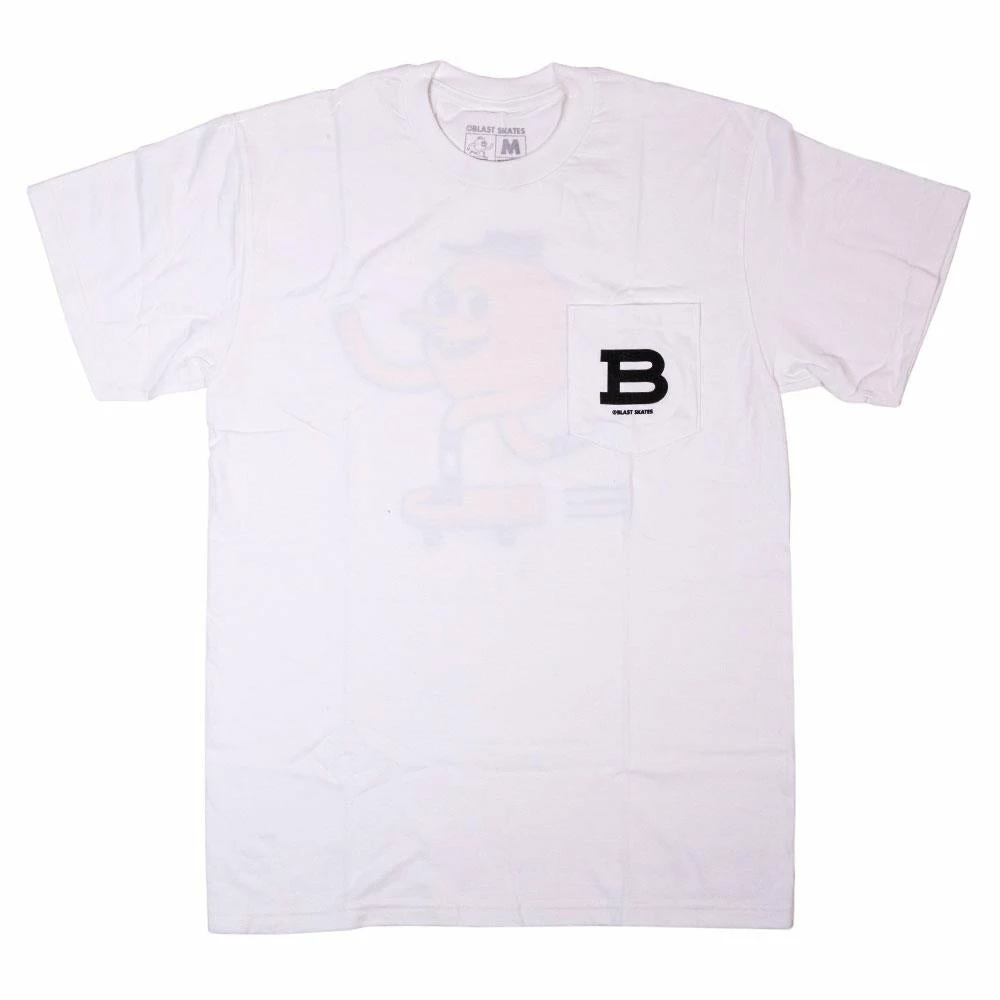 Blast skates 100% cotton classic Mascot pocket T-shirt, printed in London UK.