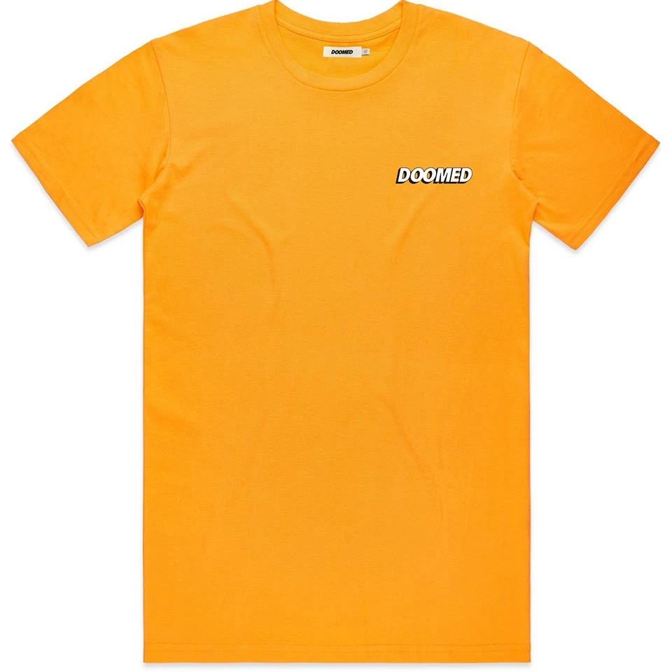 Premium T-Shirt from Doomed. Pre shrunk, Side seamed, featuring the Doomed “Drop” logo printed on the left breast. Comes in some bright colours so you look like you’re ready for summer.
