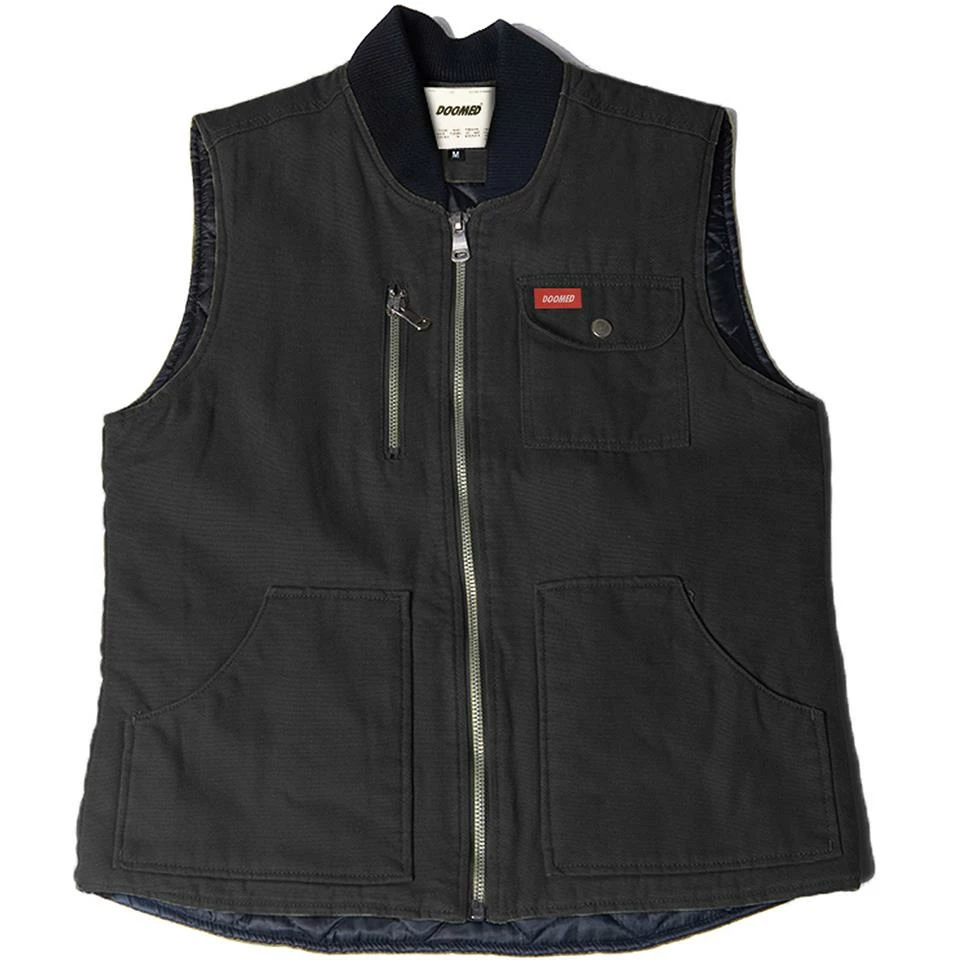 High quality vest with a Doomed logo patch on the right chest pocket and three further pockets which deliver a lot of room and a unique look along with zip fastening.