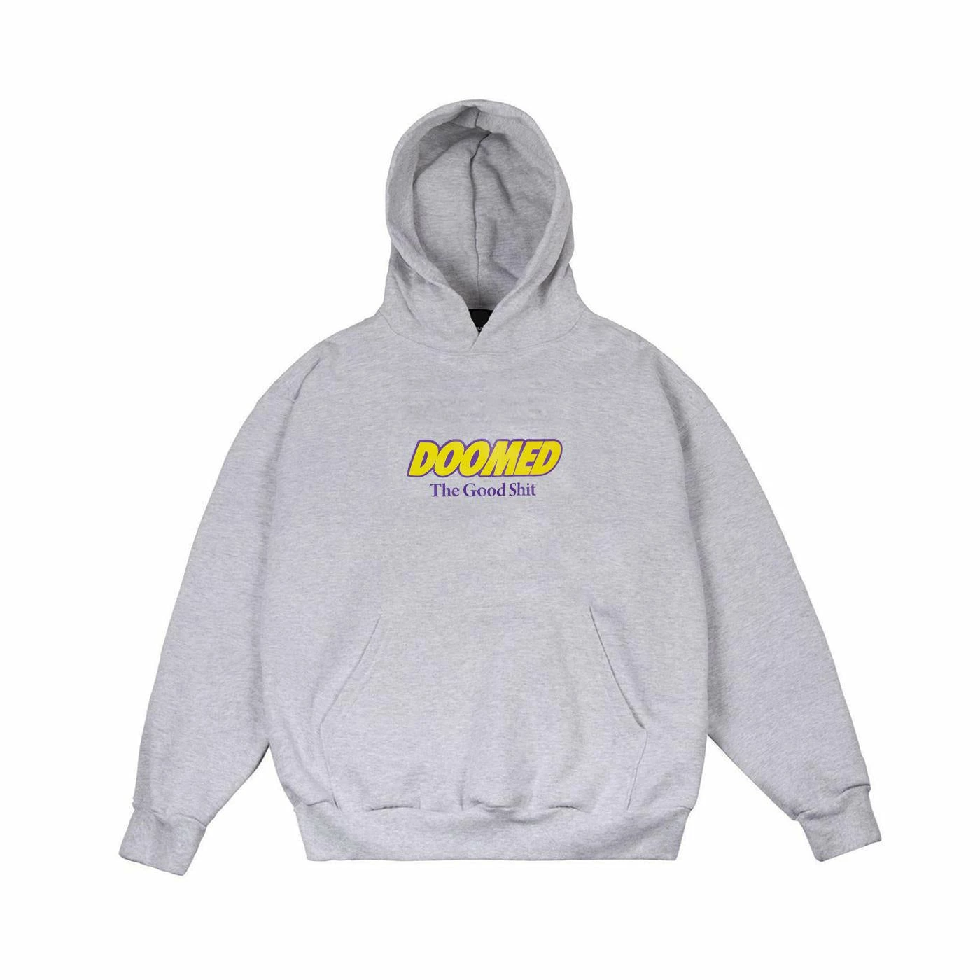 Pre-shrunk fleece knit hoodie from Doomed with printed chest design and kangaroo pocket.