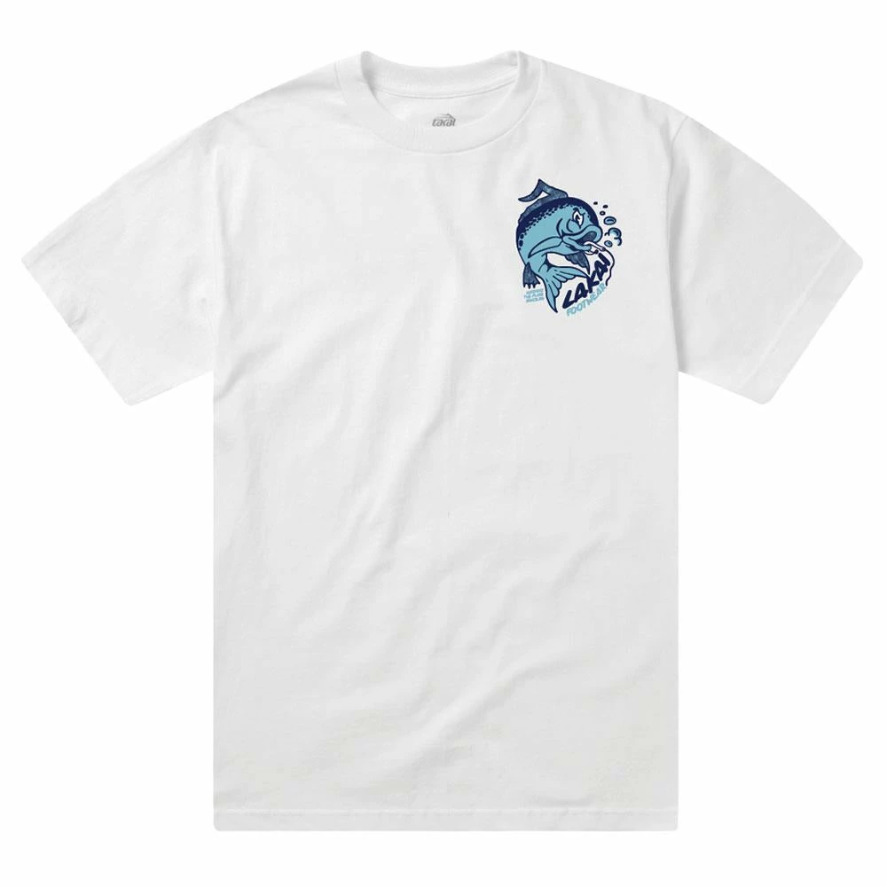 Lakai Catching the Flare Shortsleeve T-Shirt in white featuring screen print artwork on front & back, 100% Cotton.