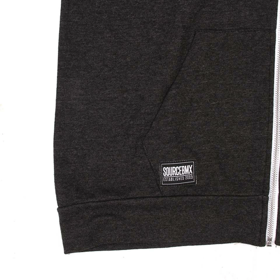 Premium zip through hoodie from us here at the Source. Features a block logo on the left chest and a woven label on the right pocket.