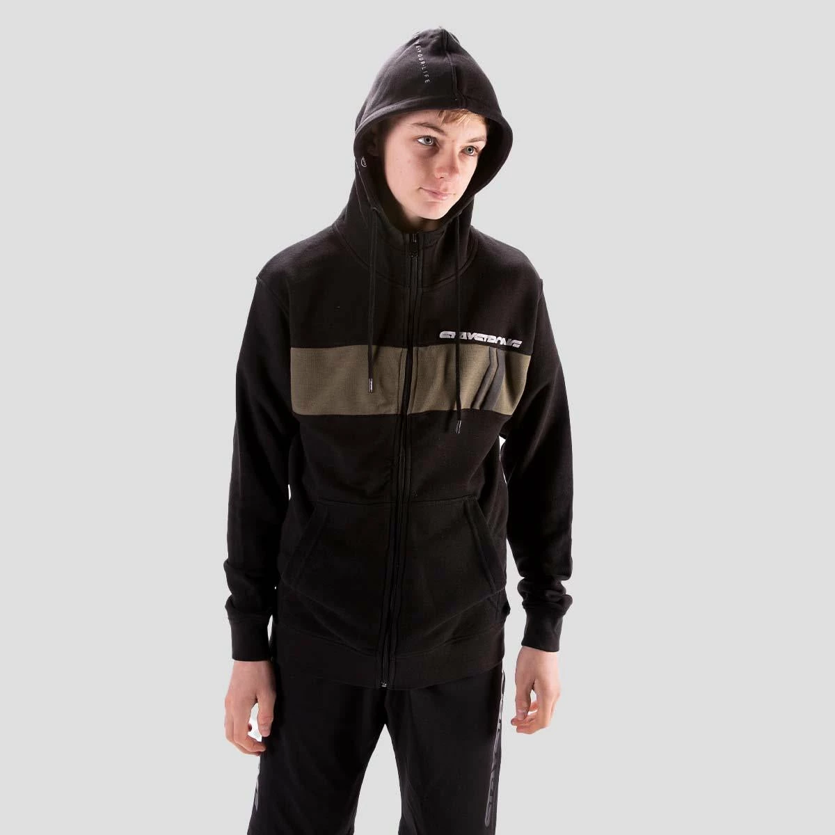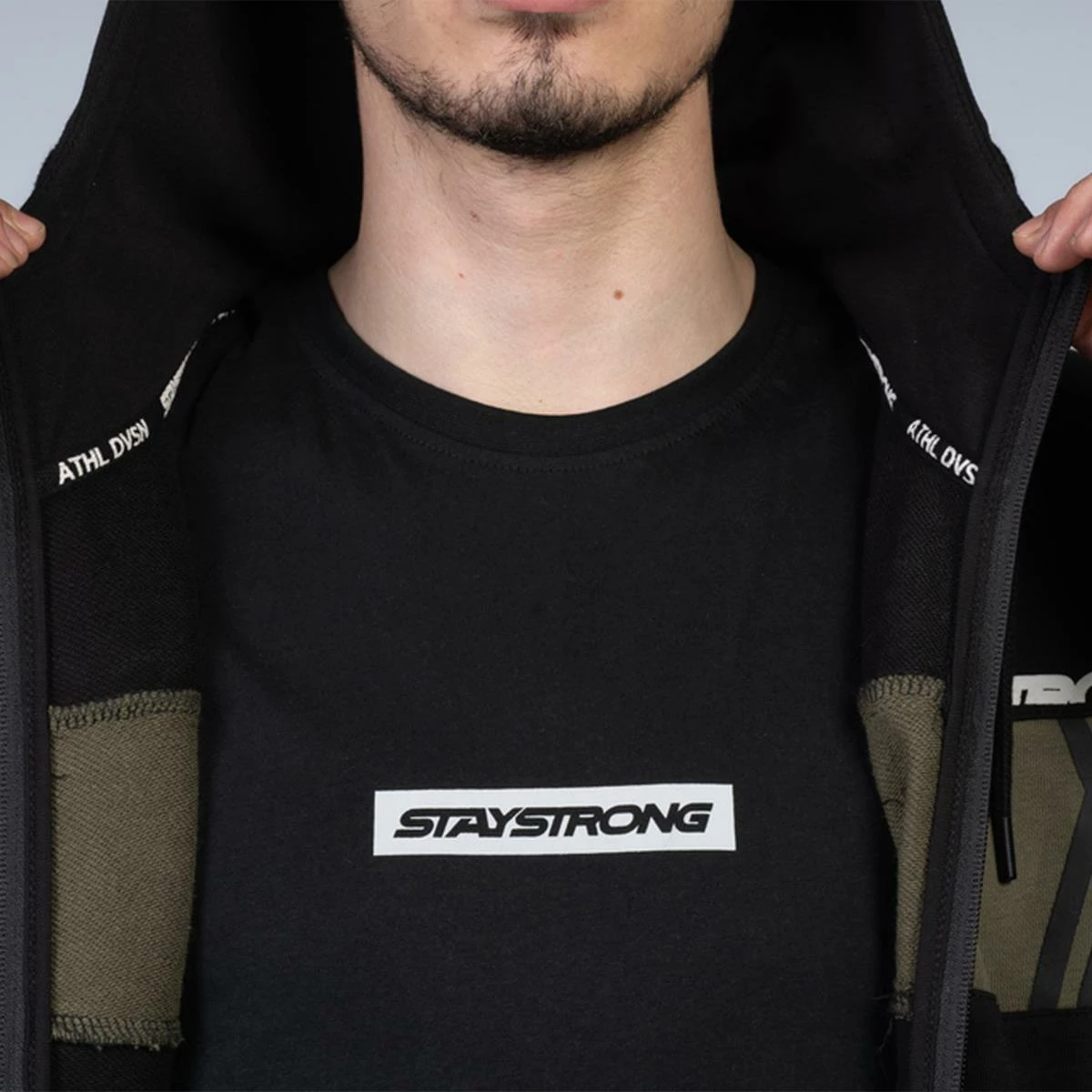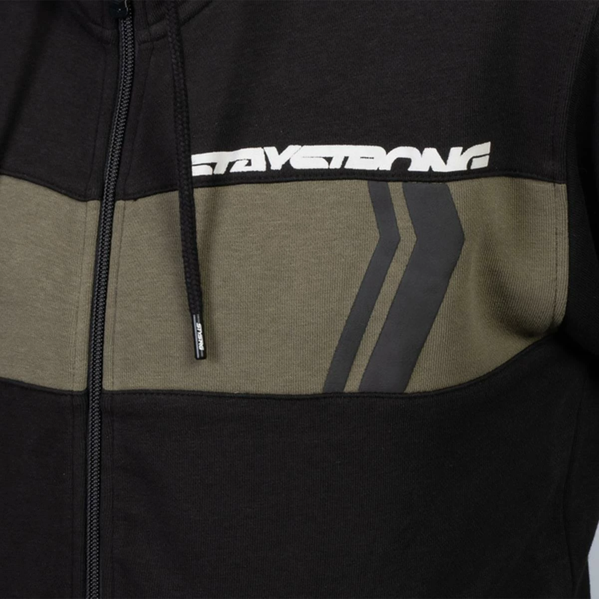 Stay Strong Cut Off Zip Hoodie – Black/Olive