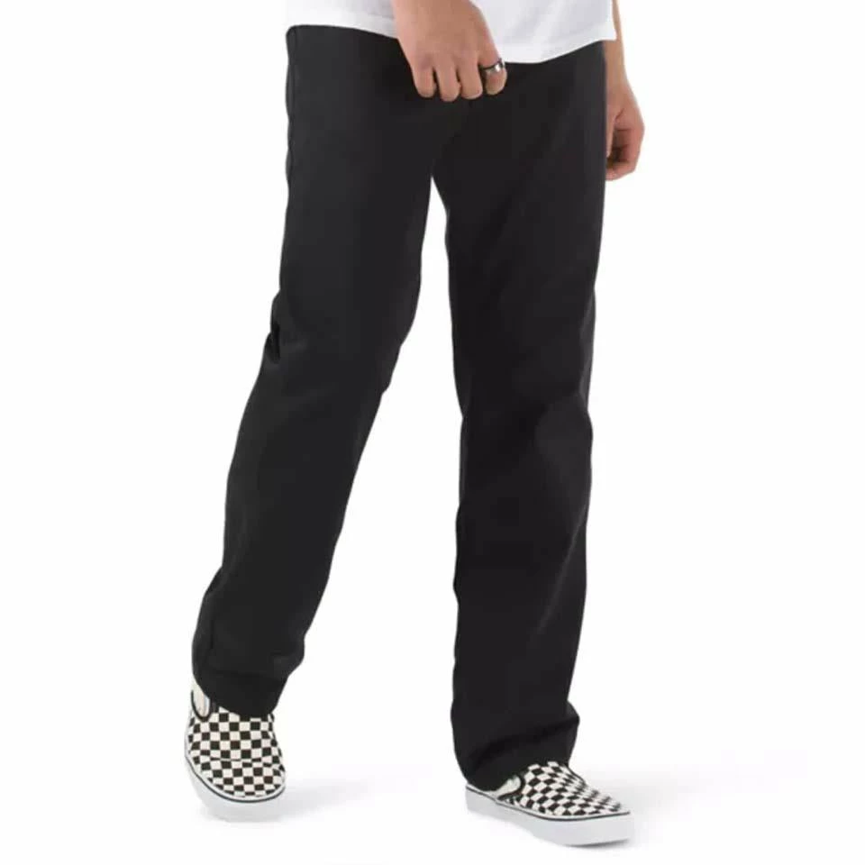 Built with a workwear fabrication, this relaxed chino pant features classic chino front hand pockets with a new coin pocket placement on the right, rear welt pockets with button closures, and embroidered Drop V bartacks for reinforcement. Plus, details bring plenty of Off The Wall style to this skate essential, including the V belt loop detail on the back waistband, the checkerboard twill taping on the internal fly facing, and the new flag label sewn internally to the hem seam for added branding when legs are cuffed.