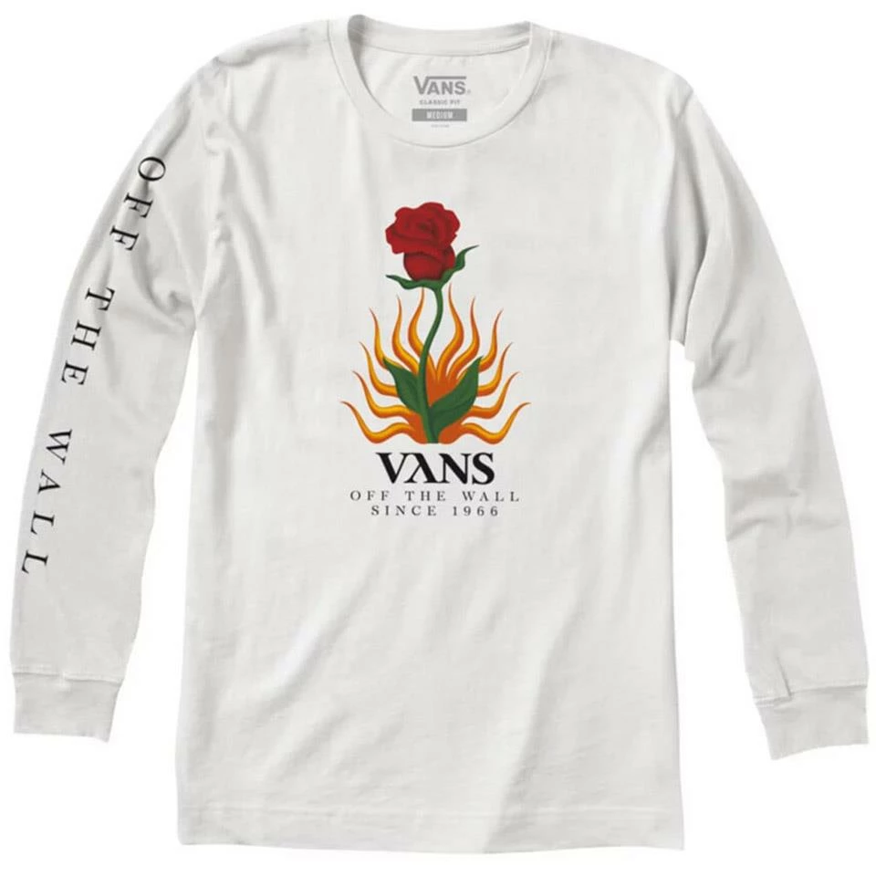 The Flores Long Sleeve T-Shirt features blooming rose graphics at the chest and an Off The Wall logo at the right sleeve. This long sleeve tee is made with heavier weight 100% carded ringspun cotton.