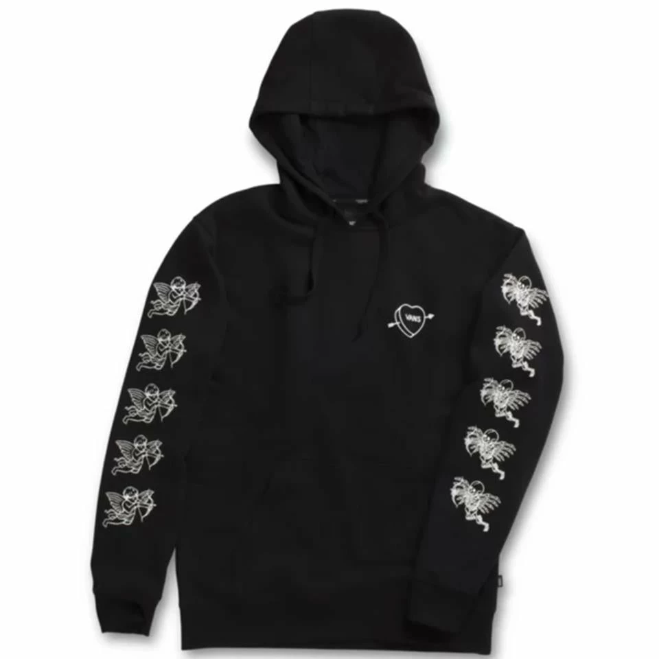The Love Hate Pullover Hoodie is a 60% cotton, 40% polyester fleece pullover hooded sweatshirt with a front pouch pocket and printed graphics at the left chest and sleeves.