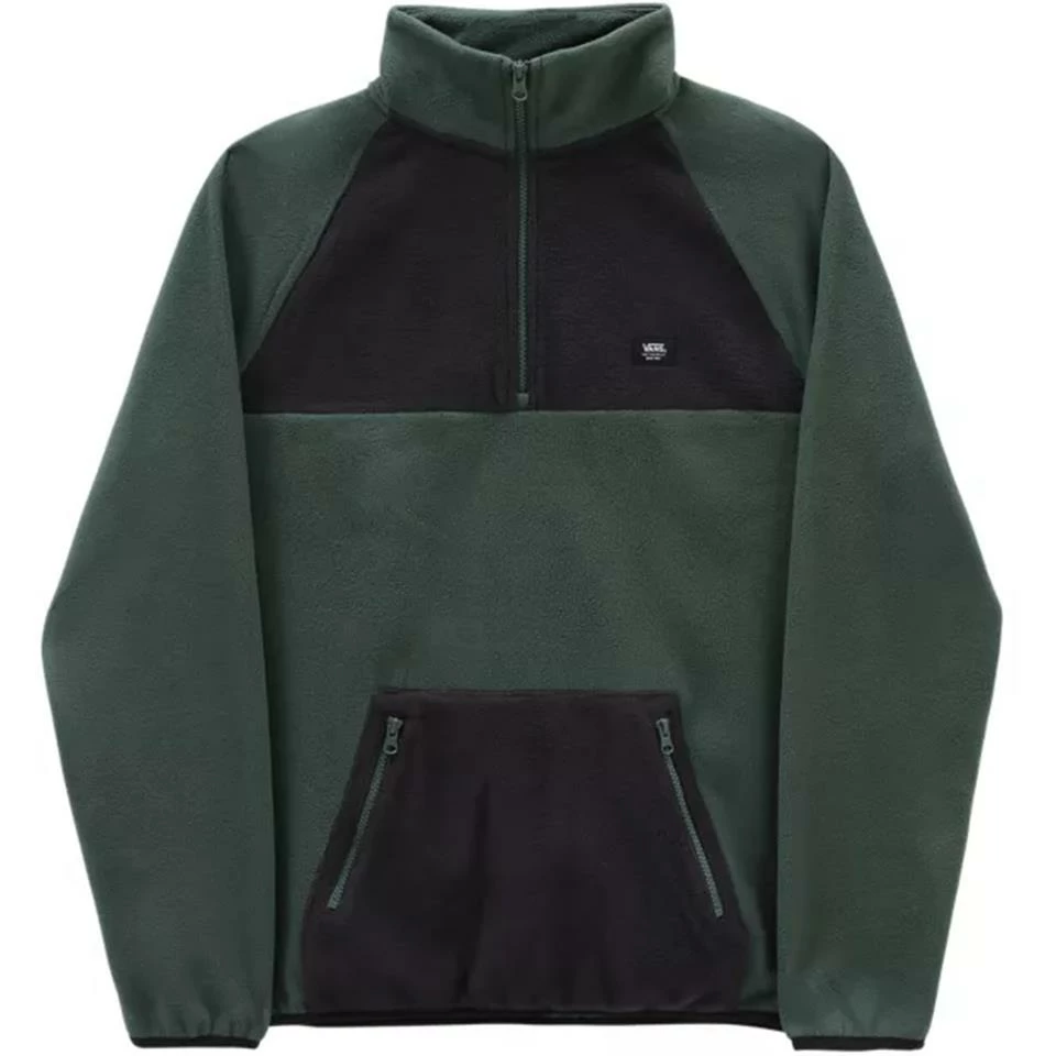 The Polar Fleece Anorak is a 100% polyester polar fleece pullover anorak sweatshirt with a half zip at the neck, a colourblocked construction, and a woven patch at the left chest.