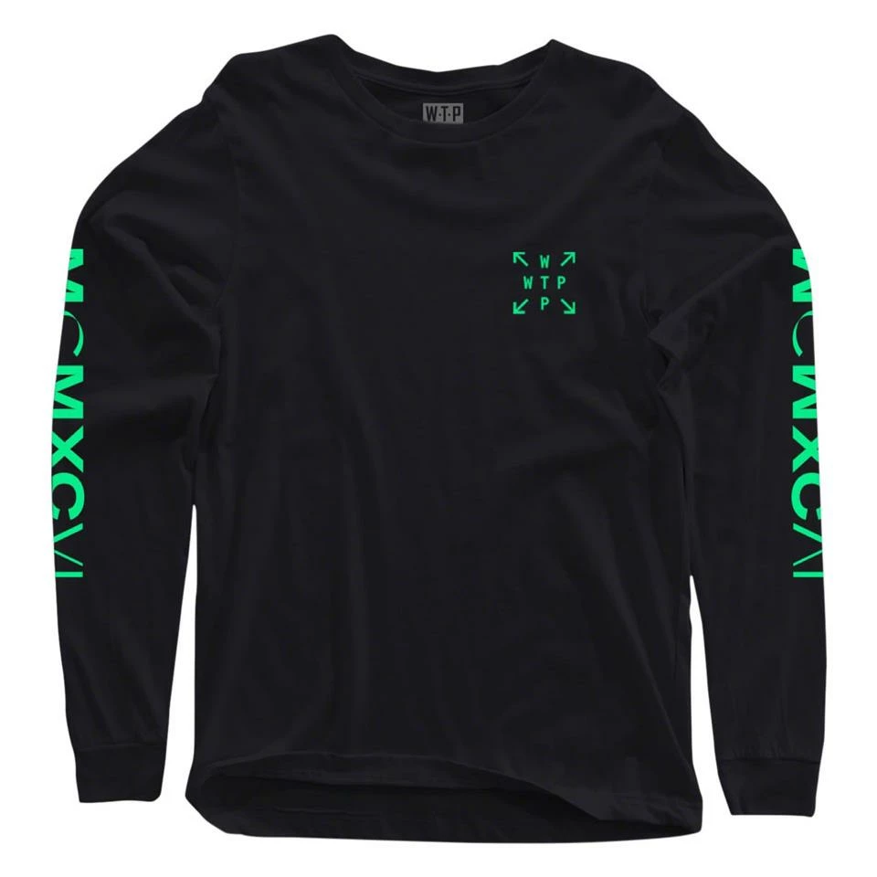 Long sleeve T-shirt features Wethepeople’s Architect Bullet logo on the front and back.